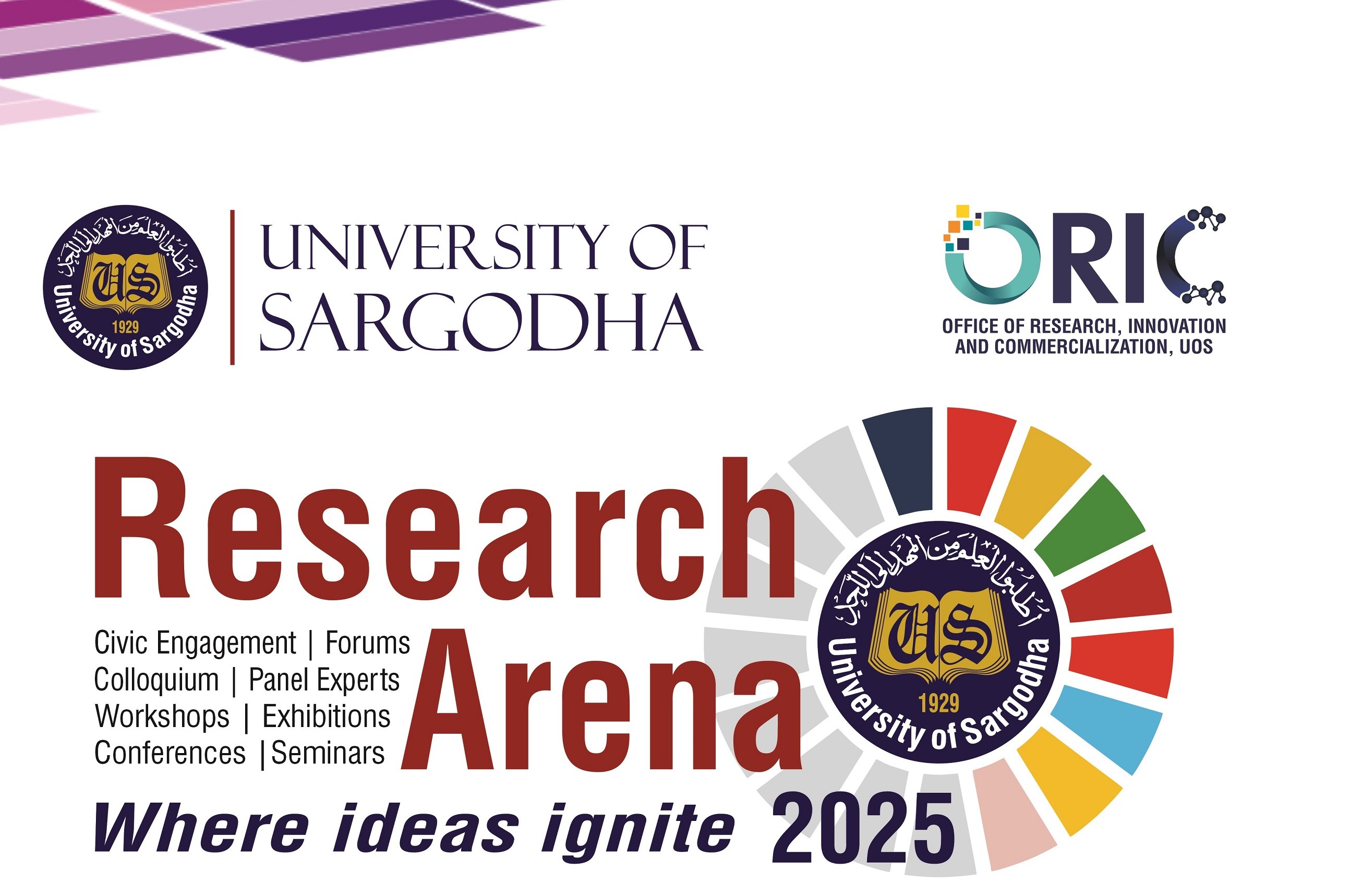 “Where Ideas Ignite” serves as the central theme of Research Arena 2025, capturing the spirit of acknowledging and promoting the diverse research and knowledge-generation efforts taking place within our institution, as well as across the wider academic and societal landscape. Research Arena 2025 represents our collective commitment to fostering a culture of collaboration, innovation, and intellectual exchange. It extends an open invitation to all stakeholders to actively engage in this celebration of discovery, learning, and the unwavering pursuit of excellence that defines the University of Sargodha.